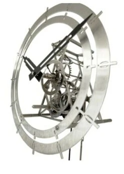 Cette horloge mécanique découpe au laser apporte de suite un effet moderne à votre intérieur. En toute sobriété, cette horloge moderne de fabrication française vous propose un véritable souffle de modernité. Son mécanisme est totalement respectueux de la tradition horlogère. Il vous faudra le remonter toutes les semaines pour un fonctionnement optimal. Son barillet décentré (rare sur les mouvements mécaniques) permet d’aligner naturellement le poids avec le balancier placé à l’avant.