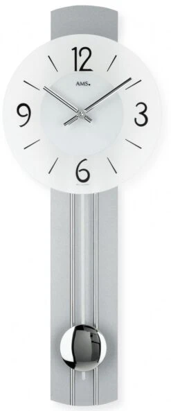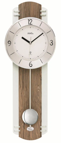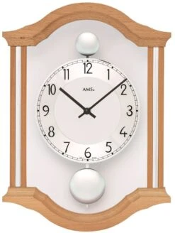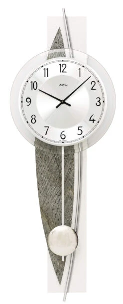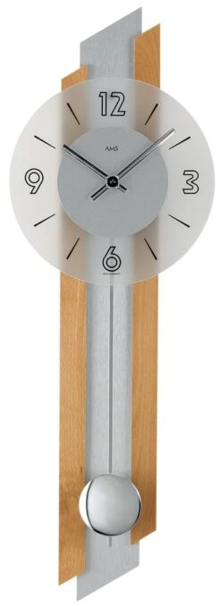 AMS Pendule Murale En Métal Argenté, Bois De Sonoma Et Verre